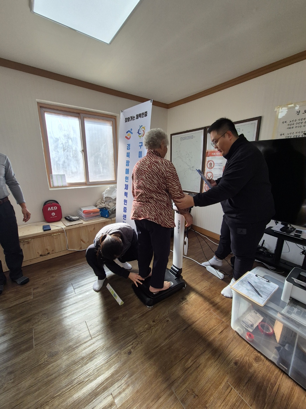 12월 19일 경상북도 내 소외지역 출장 서비스를 위해 봉화군 학산리 마을회관에 방문하여 출장 체력인증을 진행하였습니다.
